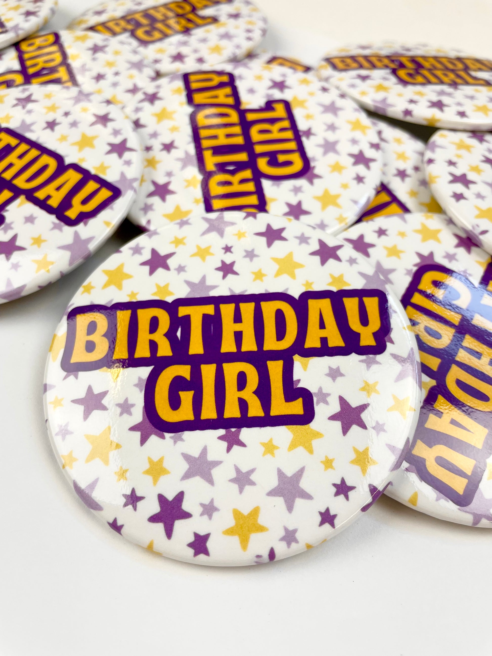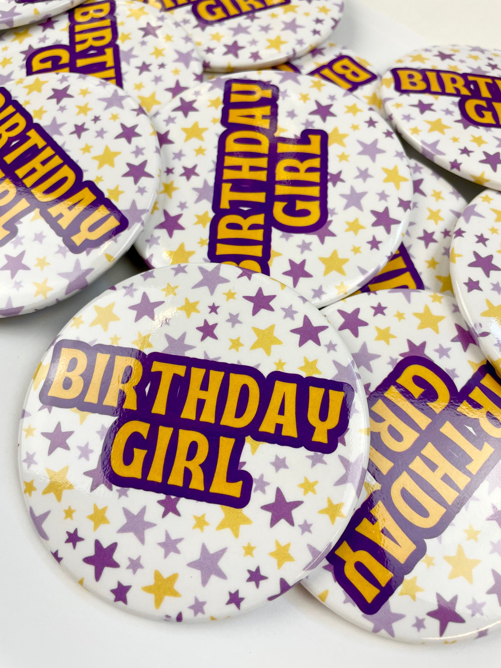 Each pin back button is 3 inches in diameter. These buttons are super lightweight and perfect for Game Day! Add to your outfit or a purse strap to complete your game day look. Each button is finished with a plastic coating to keep your button clean from any game day activities!