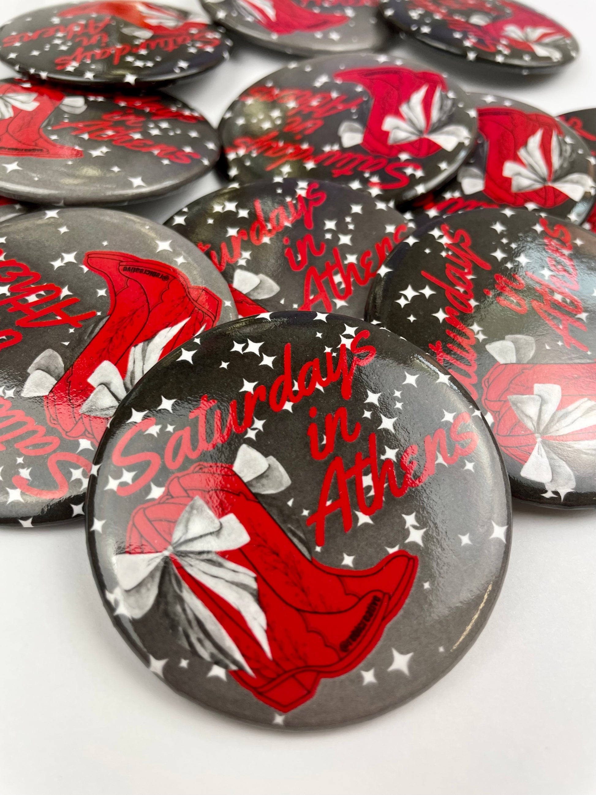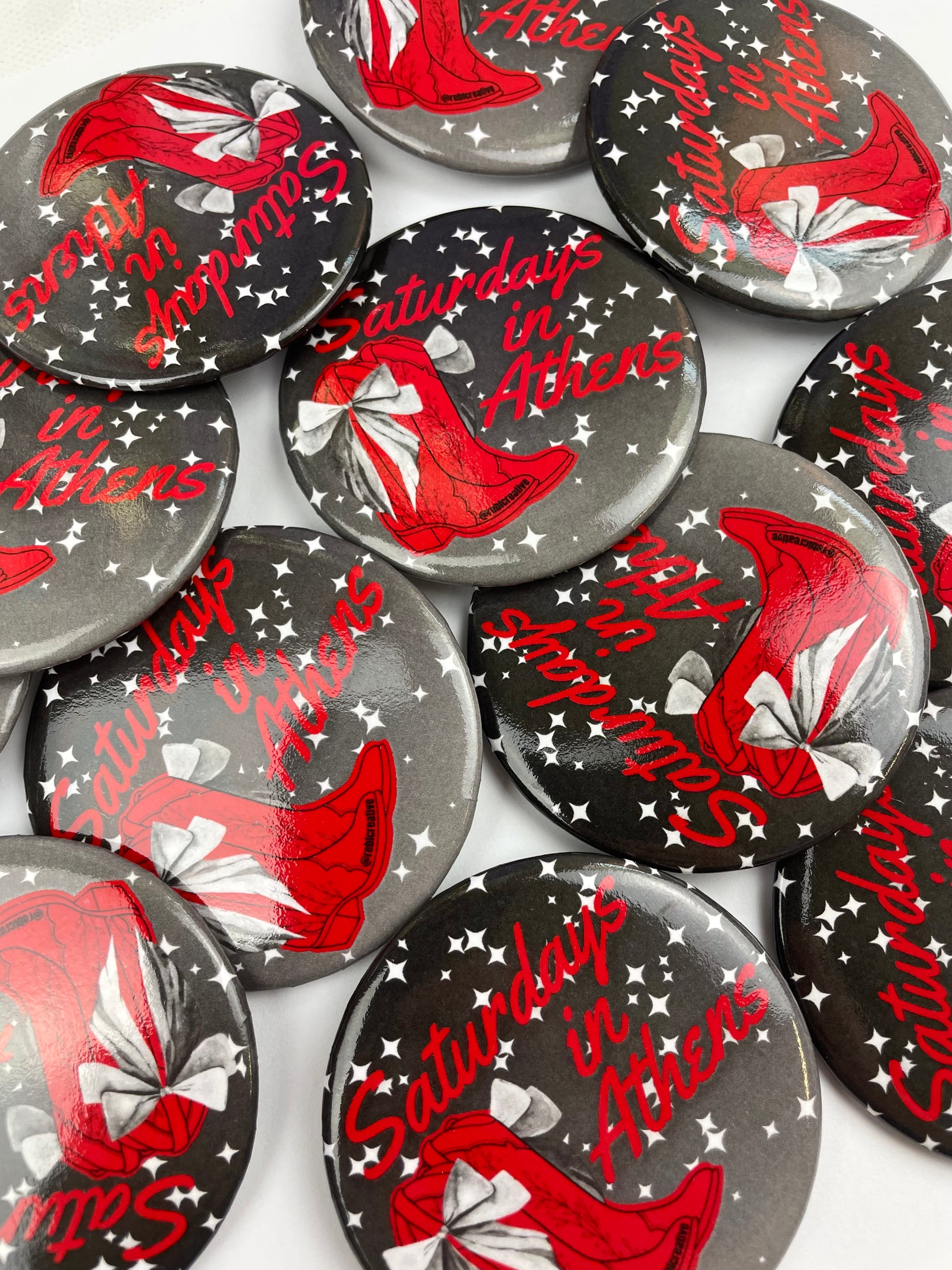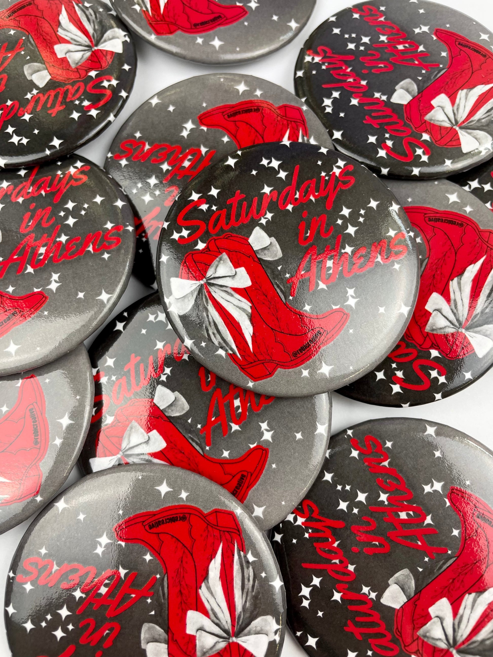 Each pin back button is 2.25 inches in diameter. These buttons are super lightweight and perfect for Game Day! Add to your outfit or a purse strap to complete your game day look. Each button is finished with a plastic coating to keep your button clean from any game day activities!