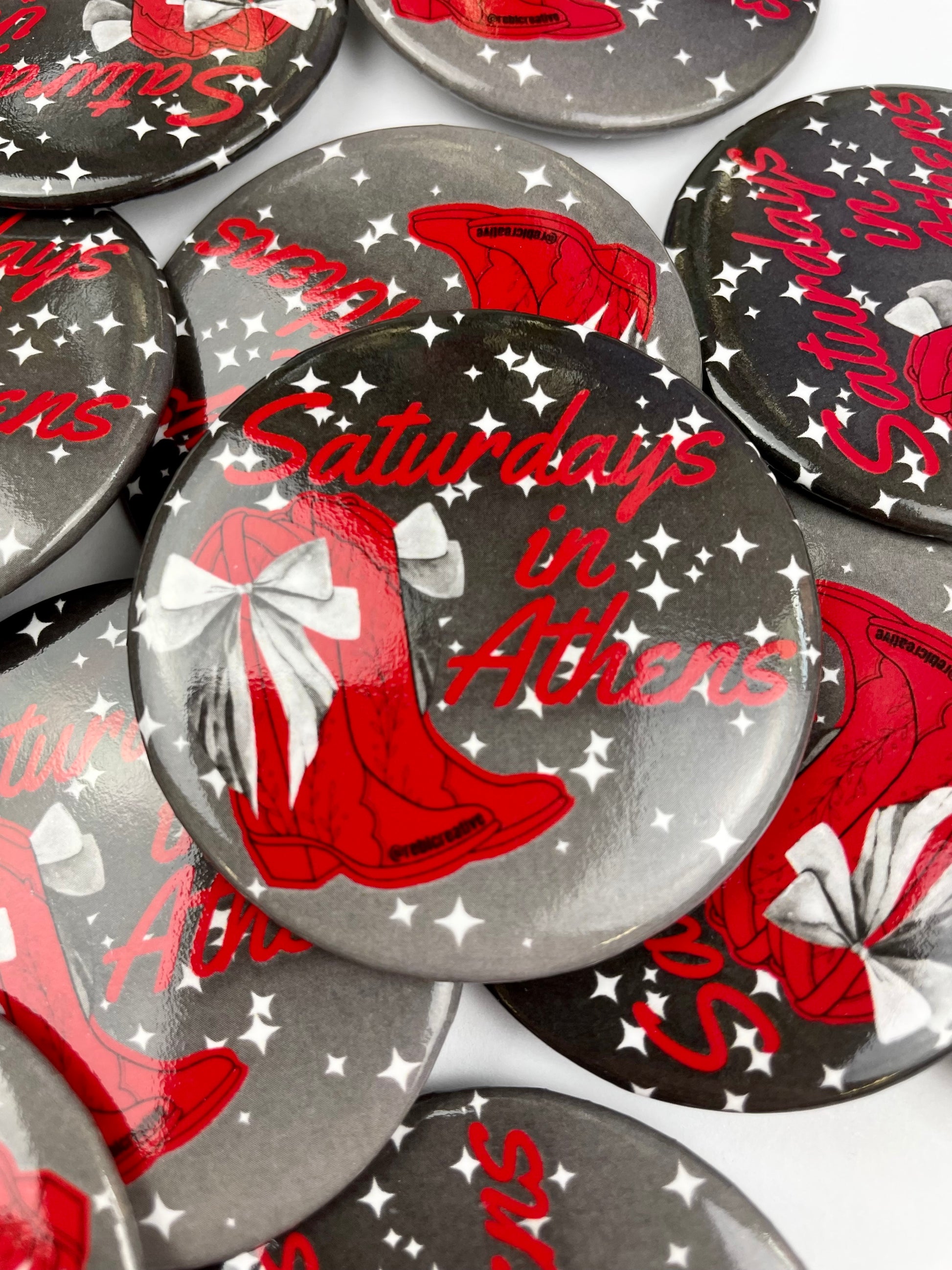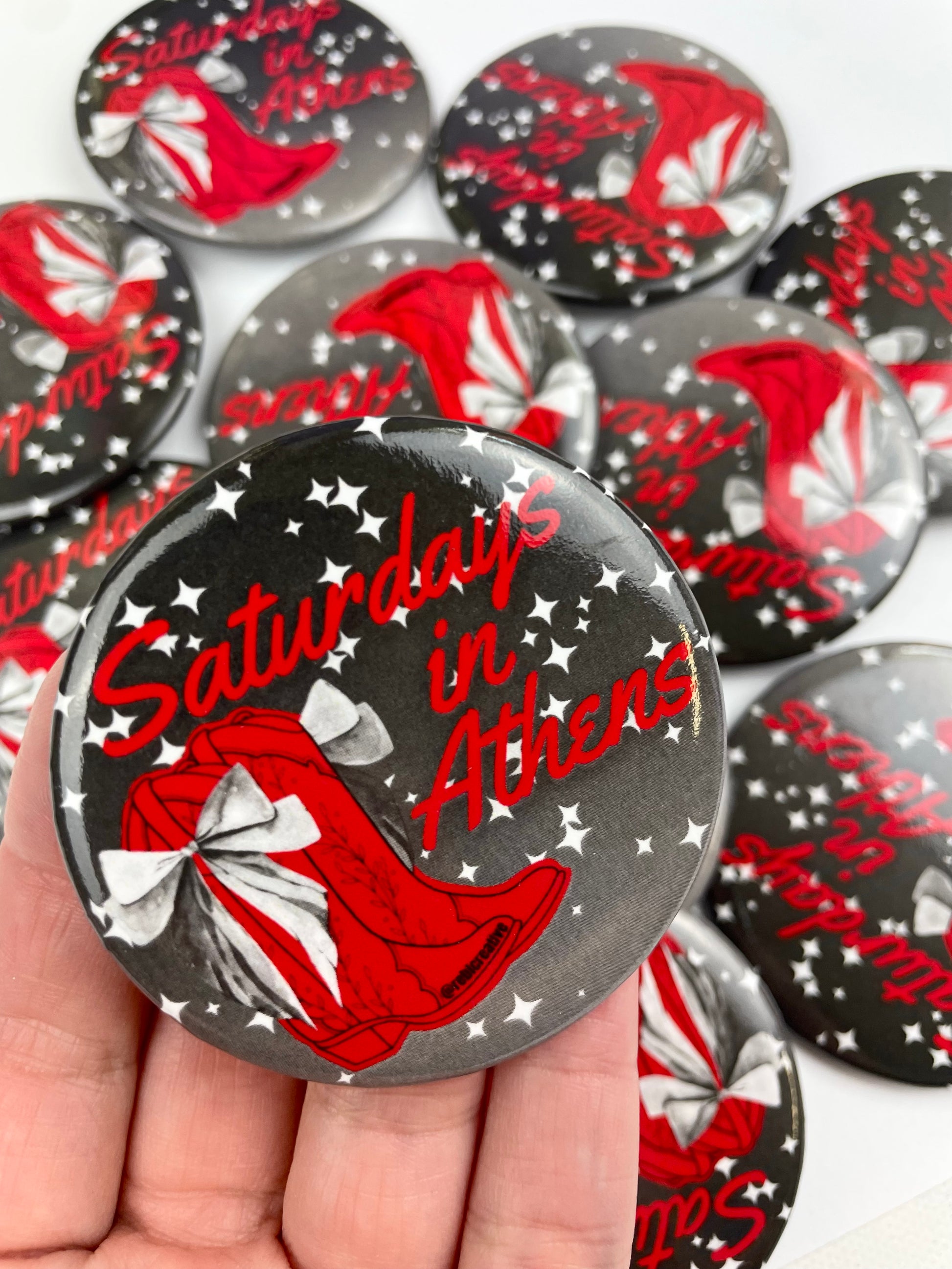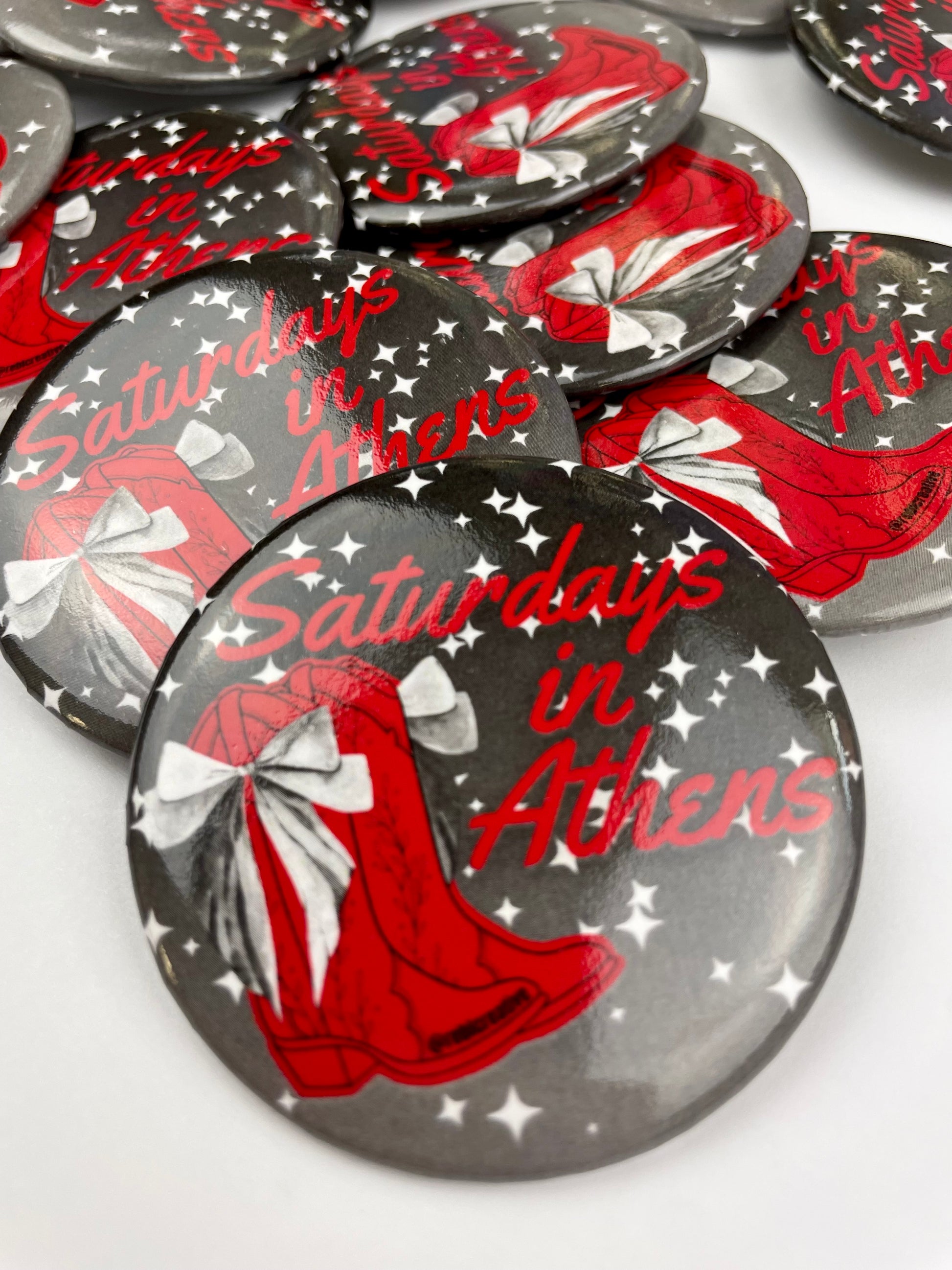 Each pin back button is 2.25 inches in diameter. These buttons are super lightweight and perfect for Game Day! Add to your outfit or a purse strap to complete your game day look. Each button is finished with a plastic coating to keep your button clean from any game day activities!