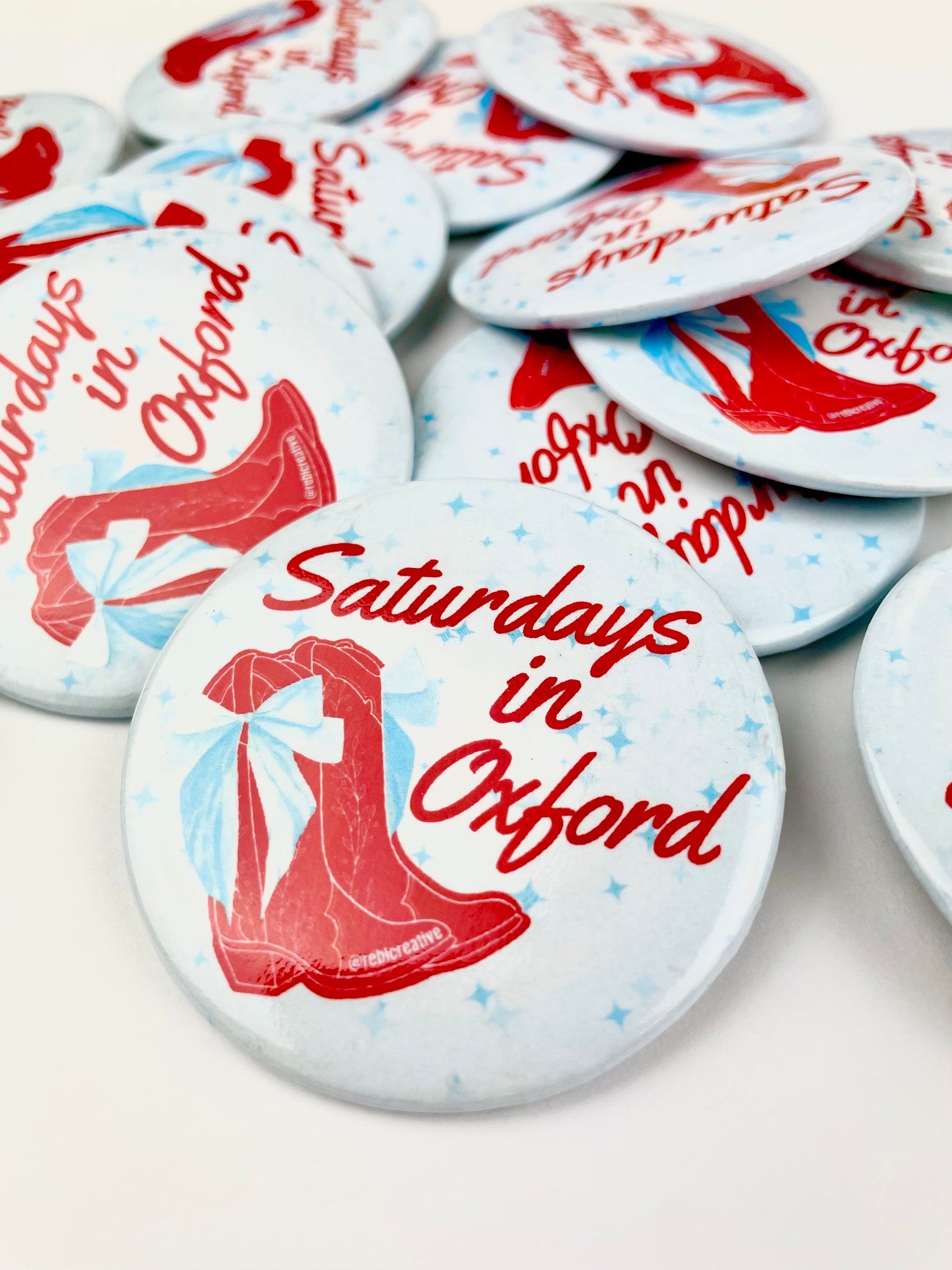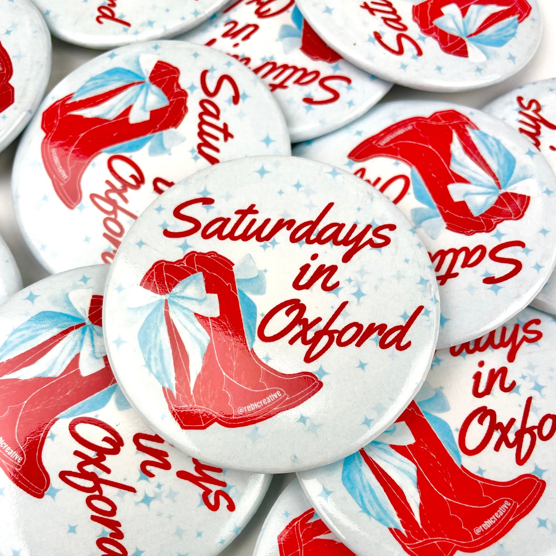 Each pin back button is 2.25 inches in diameter. These buttons are super lightweight and perfect for Game Day! Add to your outfit or a purse strap to complete your game day look. Each button is finished with a plastic coating to keep your button clean from any game day activities!