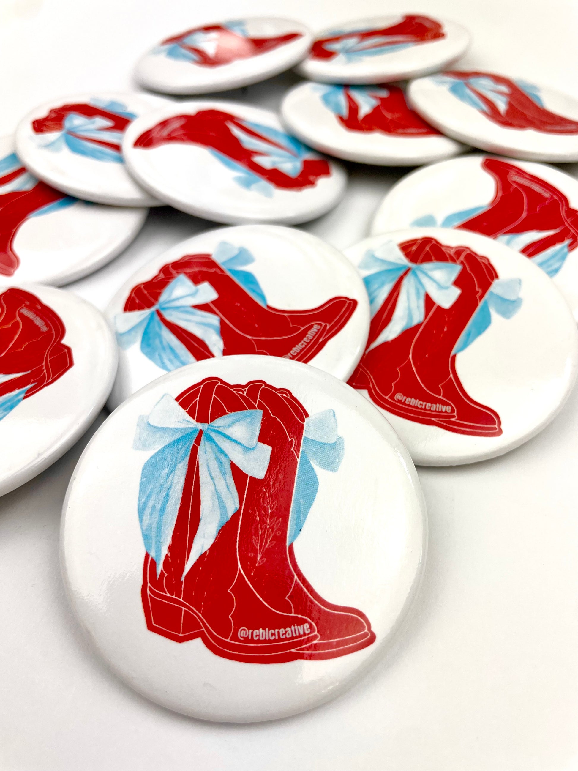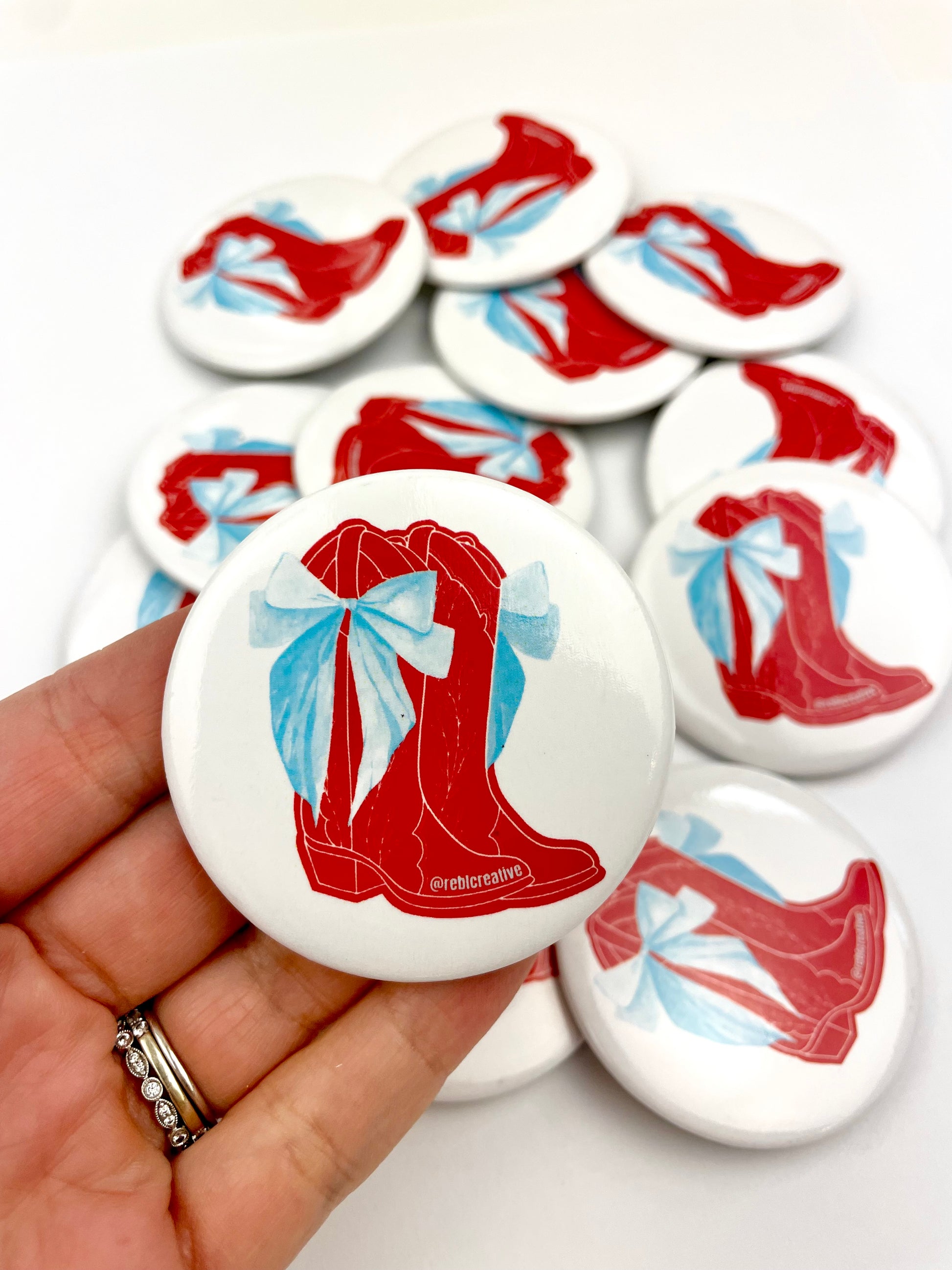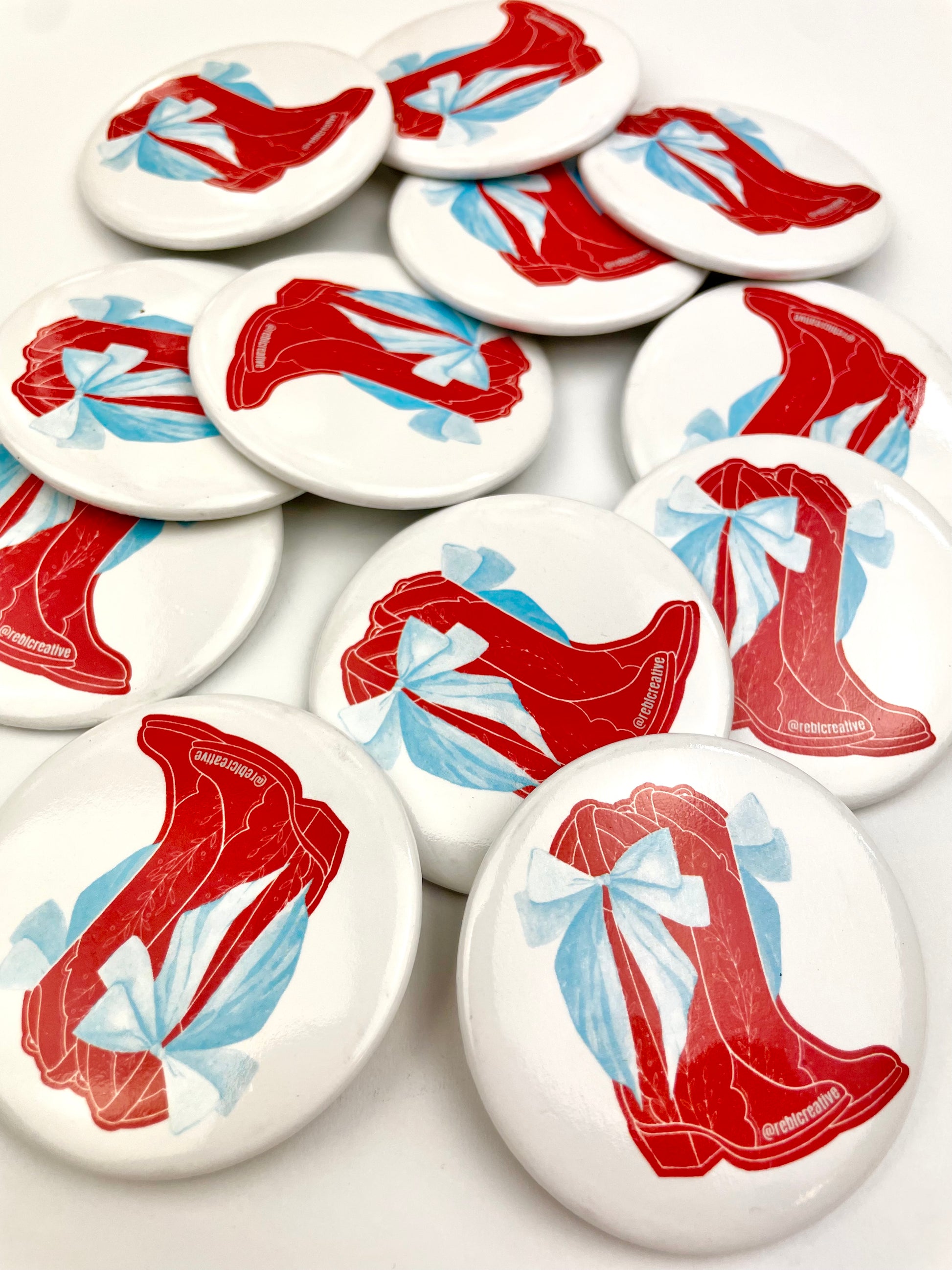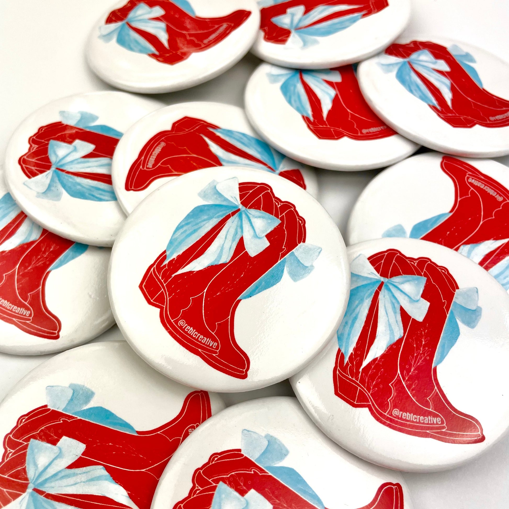 Each pin back button is 2.25 inches in diameter. These buttons are super lightweight and perfect for Game Day! Add to your outfit or a purse strap to complete your game day look. Each button is finished with a plastic coating to keep your button clean from any game day activities!