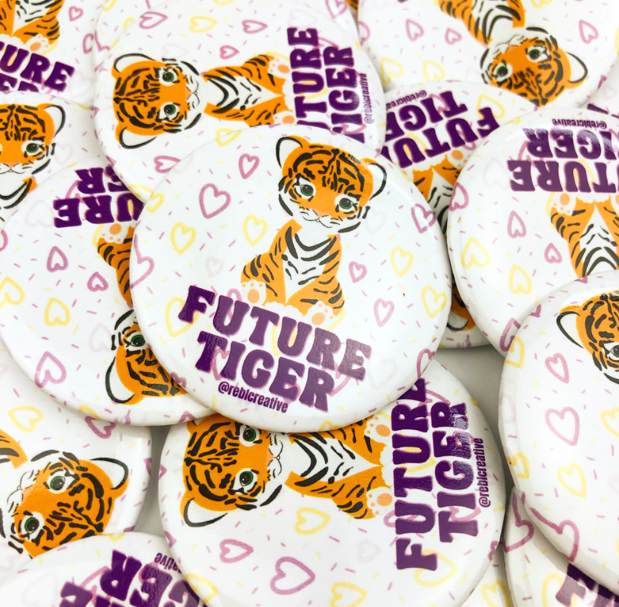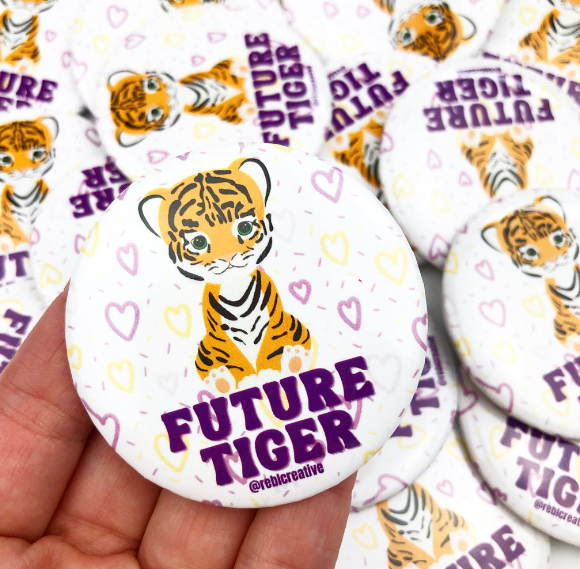 Each pin back button is 2.25 inches in diameter. These buttons are super lightweight and perfect for Game Day! Add to your outfit or a purse strap to complete your game day look. Each button is finished with a plastic coating to keep your button clean from any game day activities!