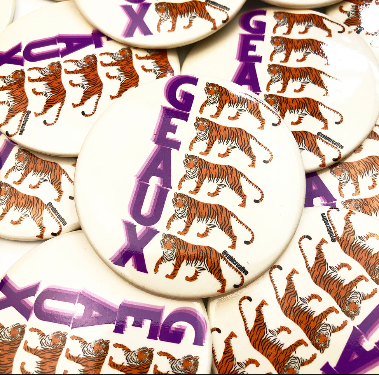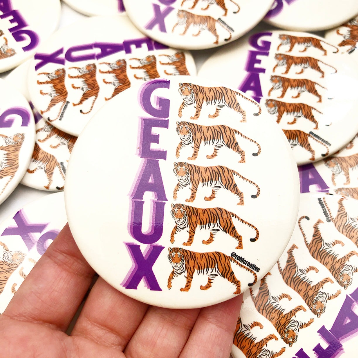 Each pin back button is 3 inches in diameter. These buttons are super lightweight and perfect for Game Day! Add to your outfit or a purse strap to complete your game day look. Each button is finished with a plastic coating to keep your button clean from any game day activities!