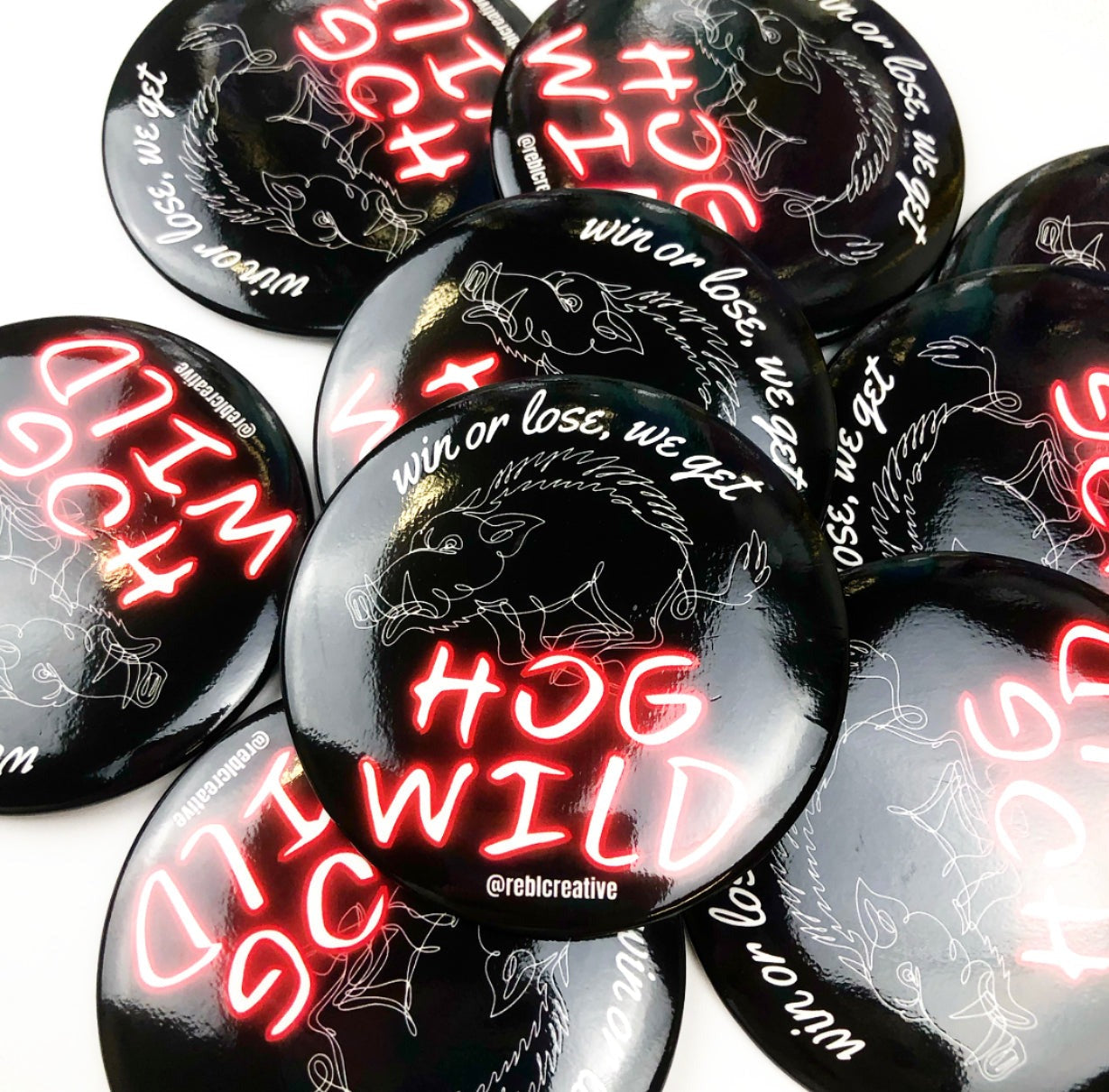 Each pin back button is 3 inches in diameter. These buttons are super lightweight and perfect for Game Day! Add to your outfit or a purse strap to complete your game day look. Each button is finished with a plastic coating to keep your button clean from any game day activities!