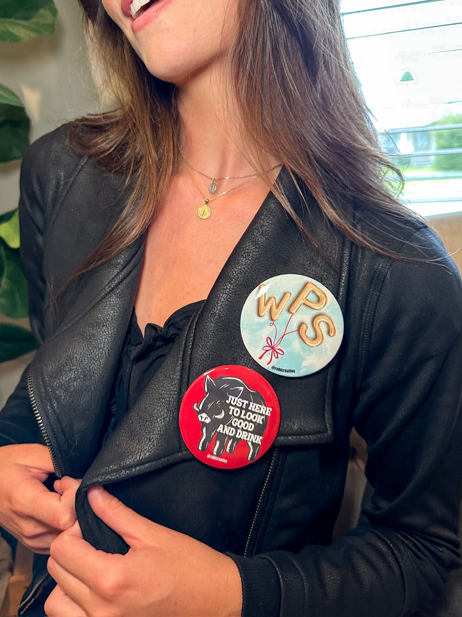 Each pin back button is 3 inches in diameter. These buttons are super lightweight and perfect for Game Day! Add to your outfit or a purse strap to complete your game day look. Each button is finished with a plastic coating to keep your button clean from any game day activities!