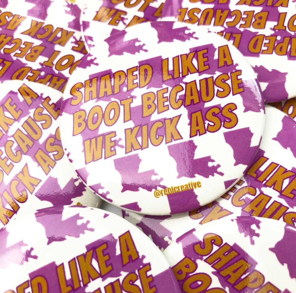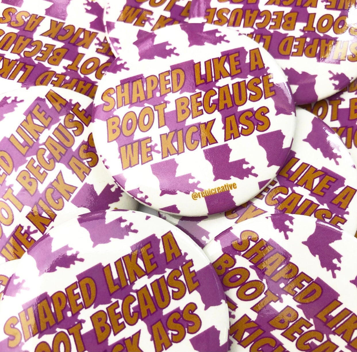Each pin back button is 2.25 inches in diameter. These buttons are super lightweight and perfect for Game Day! Add to your outfit or a purse strap to complete your game day look. Each button is finished with a plastic coating to keep your button clean from any game day activities!