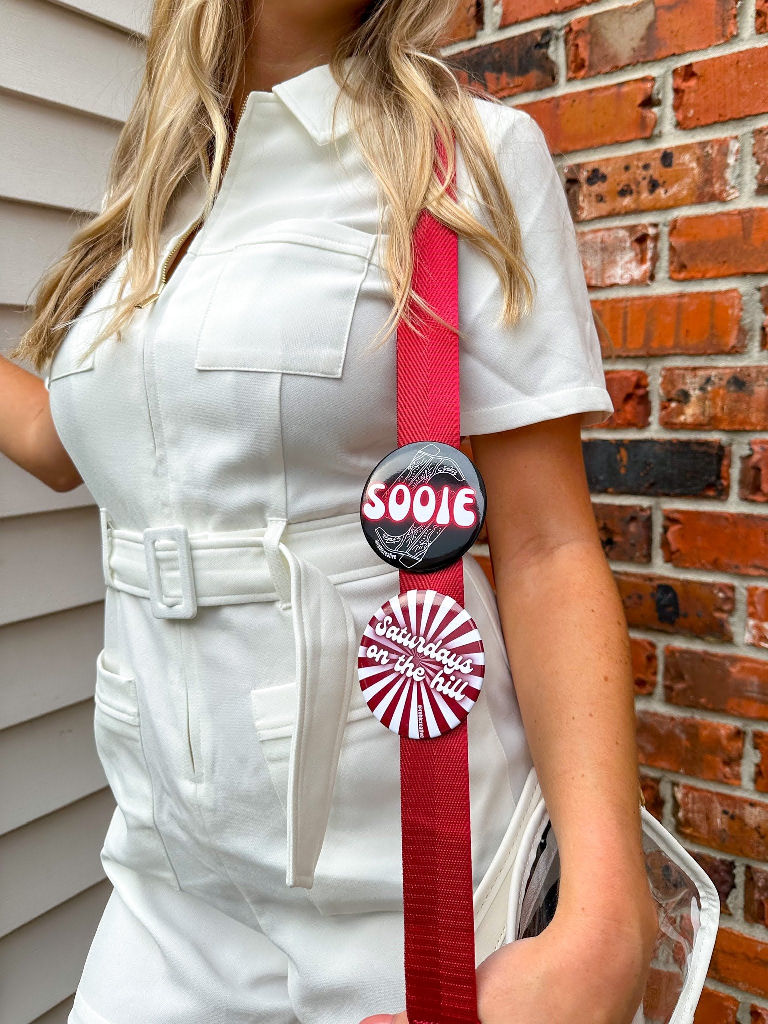 Each pin back button is 3 inches in diameter. These buttons are super lightweight and perfect for Game Day! Add to your outfit or a purse strap to complete your game day look. Each button is finished with a plastic coating to keep your button clean from any game day activities!