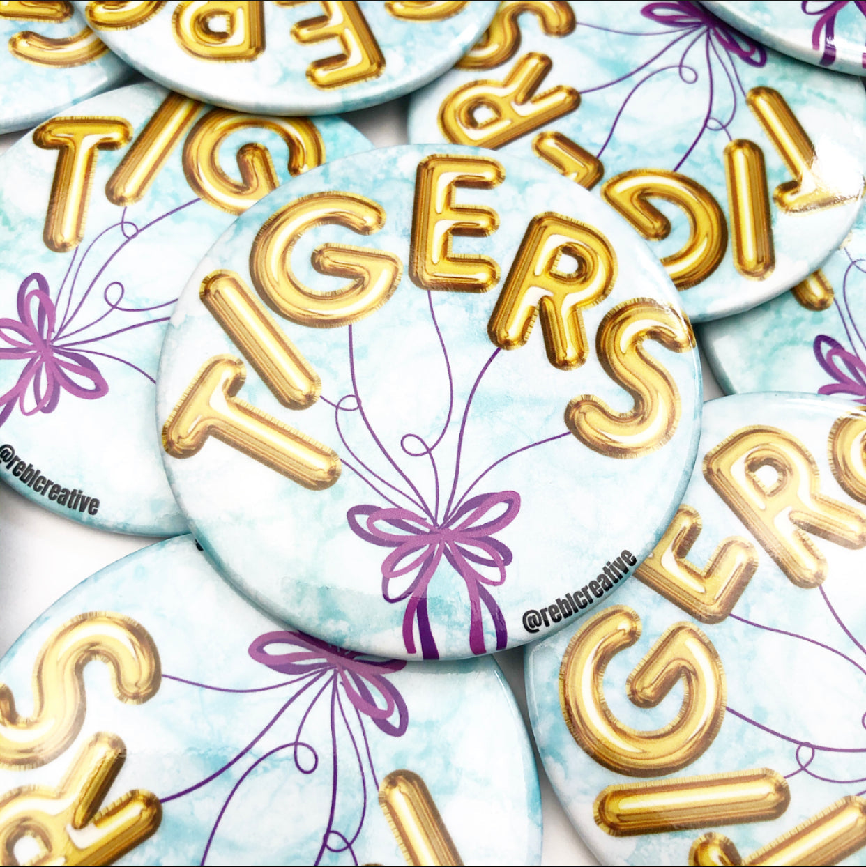 Each pin back button is 3 inches in diameter. These buttons are super lightweight and perfect for Game Day! Add to your outfit or a purse strap to complete your game day look. Each button is finished with a plastic coating to keep your button clean from any game day activities!