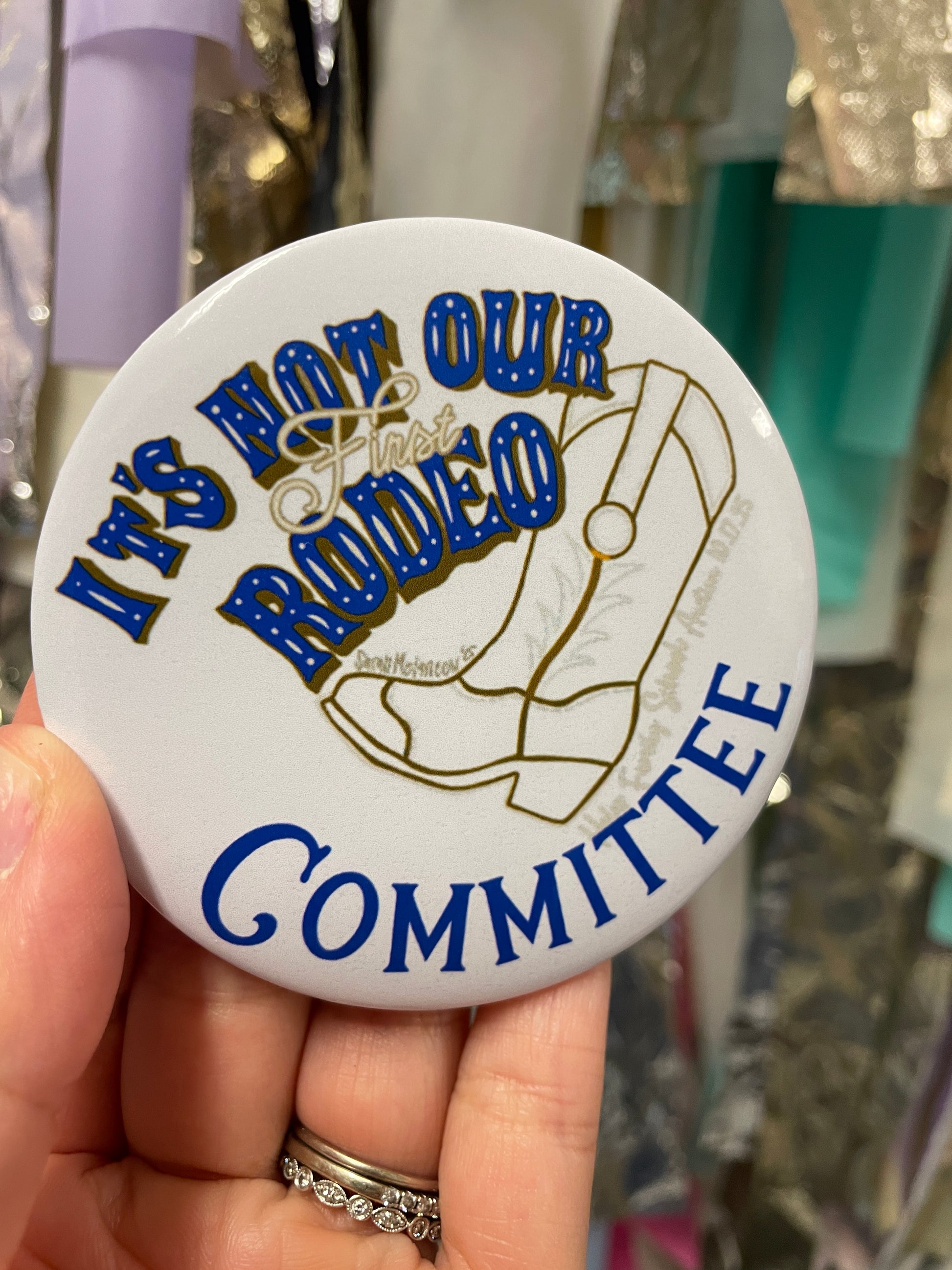 Each pin back button is 3 inches in diameter. These buttons are super lightweight and perfect for Game Day! Add to your outfit or a purse strap to complete your game day look. Each button is finished with a plastic coating to keep your button clean from any game day activities!