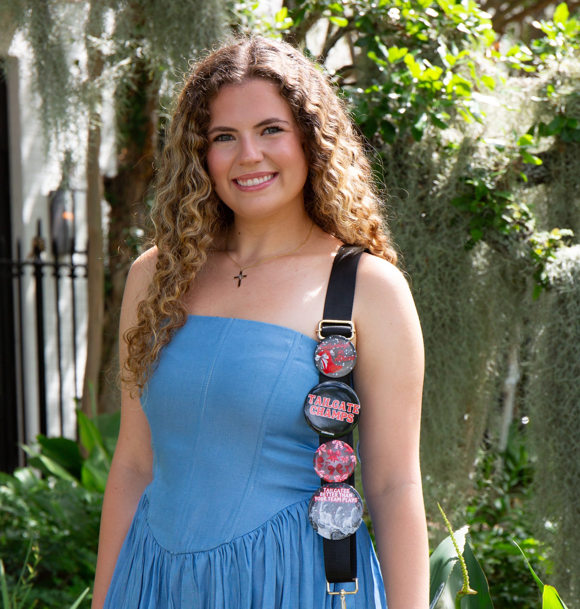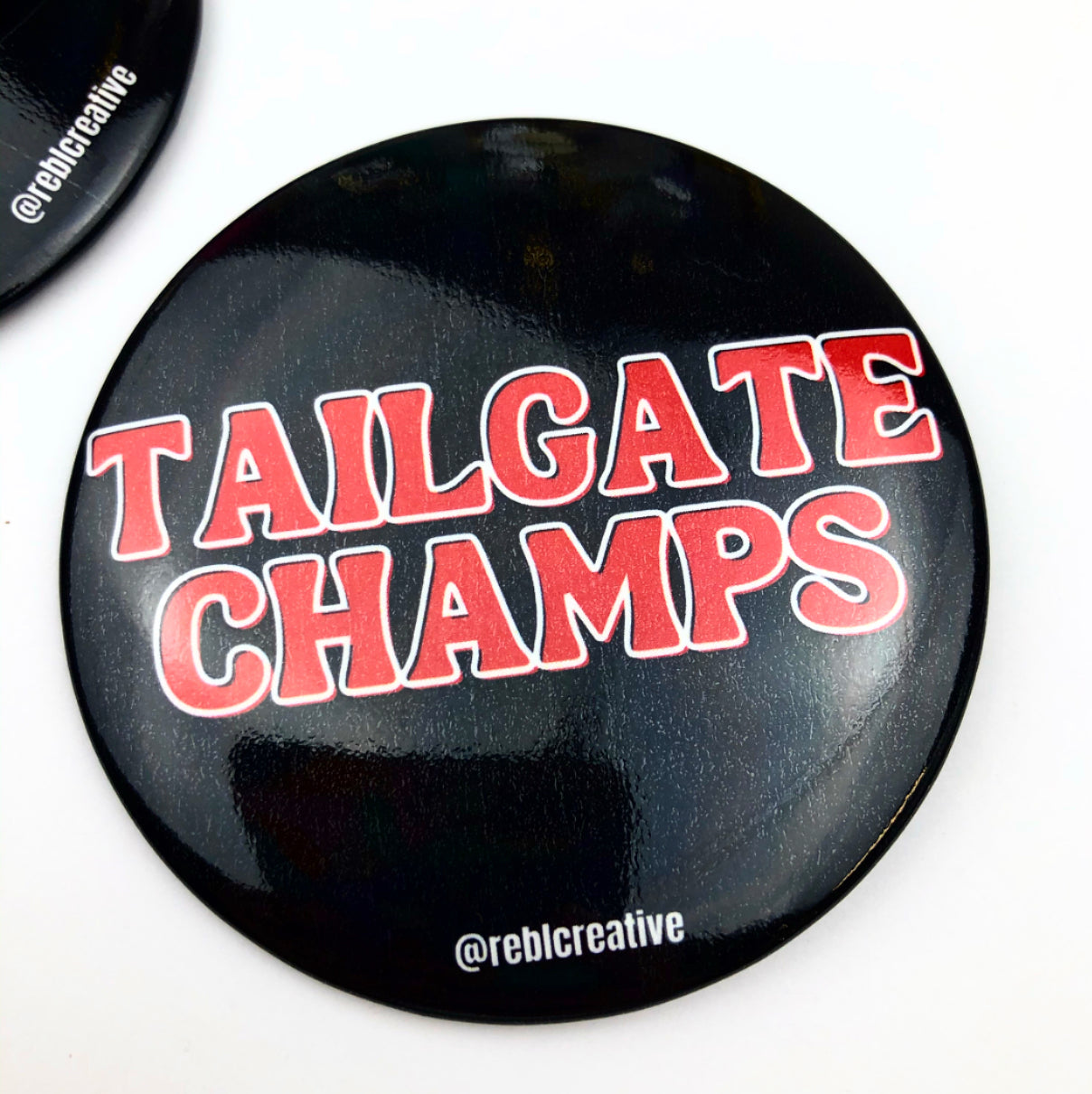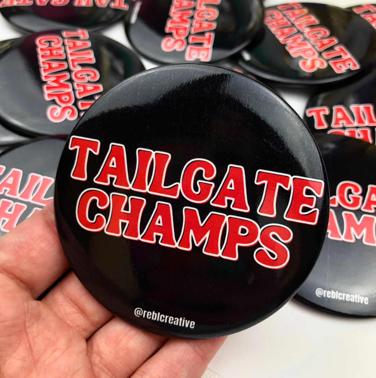 Each pin back button is 3 inches in diameter. These buttons are super lightweight and perfect for Game Day! Add to your outfit or a purse strap to complete your game day look. Each button is finished with a plastic coating to keep your button clean from any game day activities!