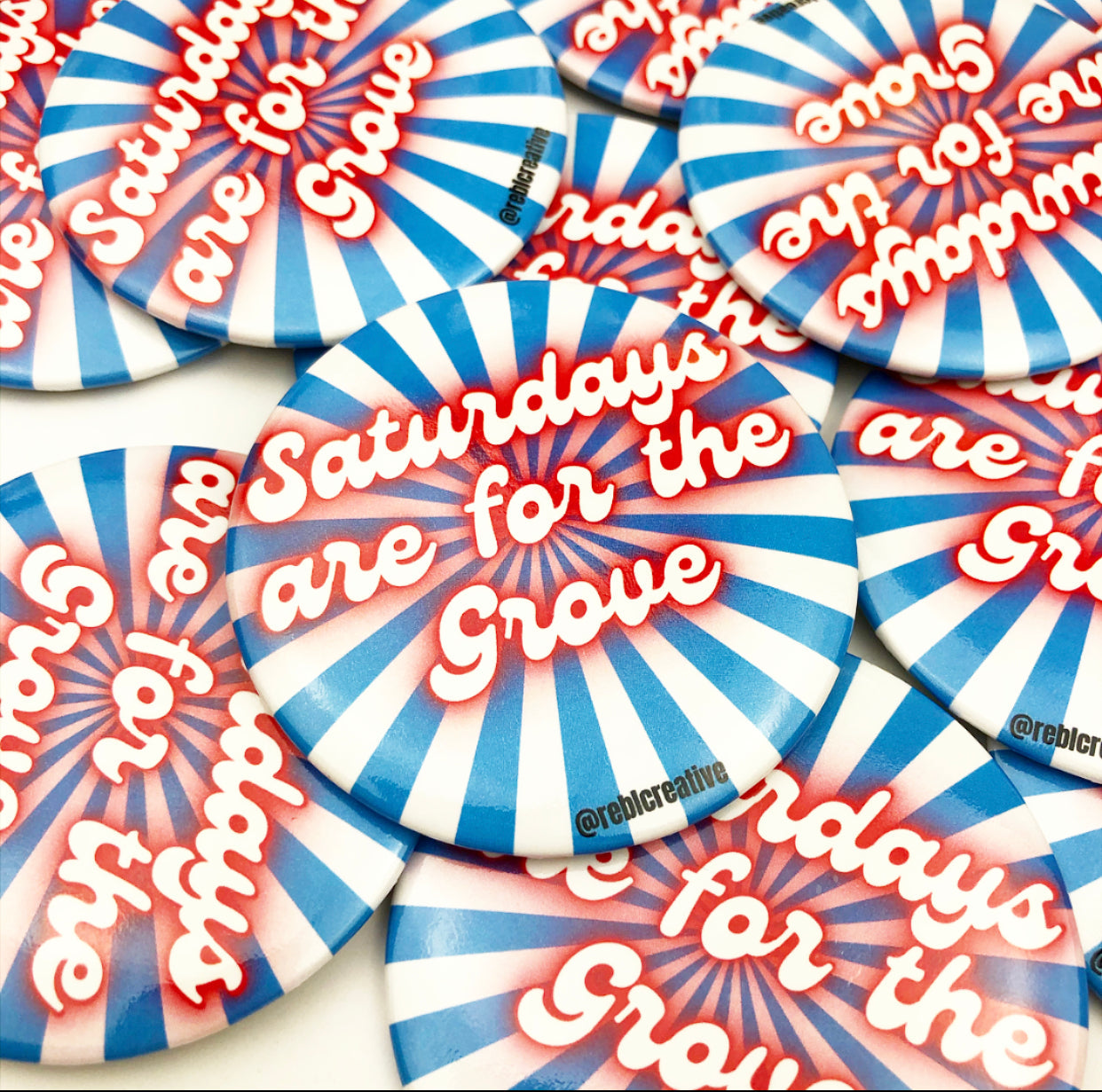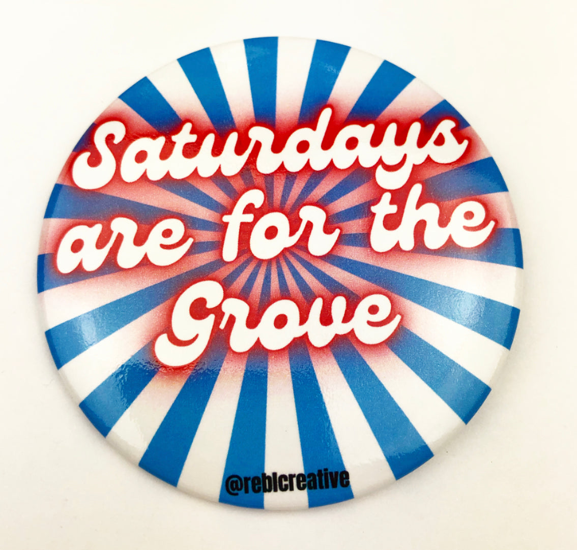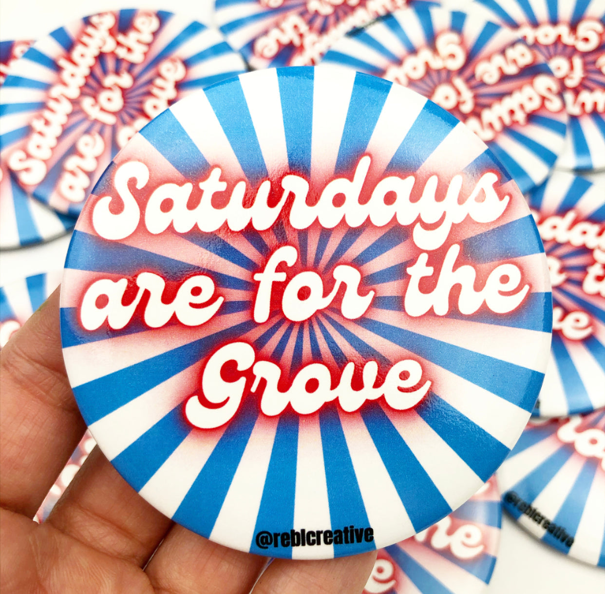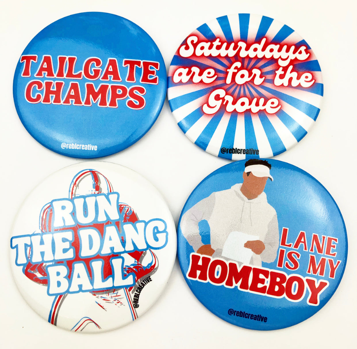 Each pin back button is 3 inches in diameter. These buttons are super lightweight and perfect for Game Day! Add to your outfit or a purse strap to complete your game day look. Each button is finished with a plastic coating to keep your button clean from any game day activities!
