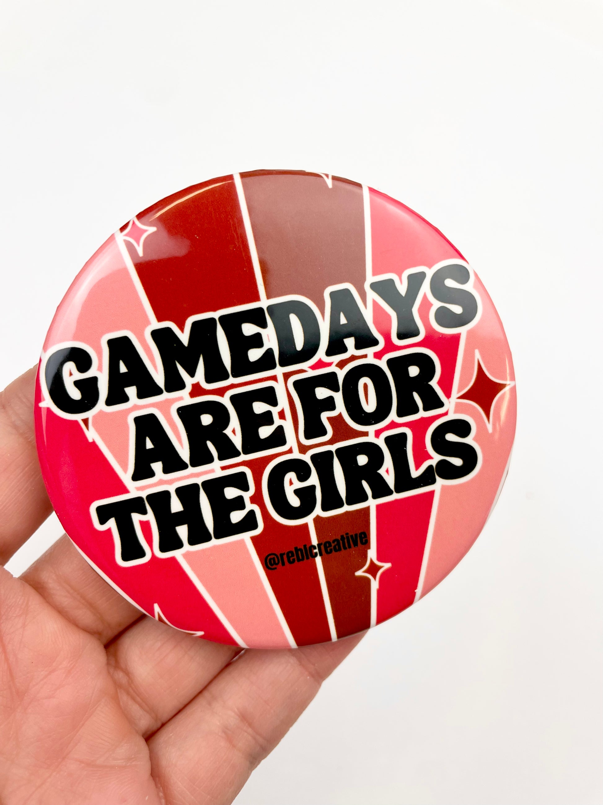 Each pin back button is 2.25 inches in diameter. These buttons are super lightweight and perfect for Game Day! Add to your outfit or a purse strap to complete your game day look. Each button is finished with a plastic coating to keep your button clean from any game day activities!