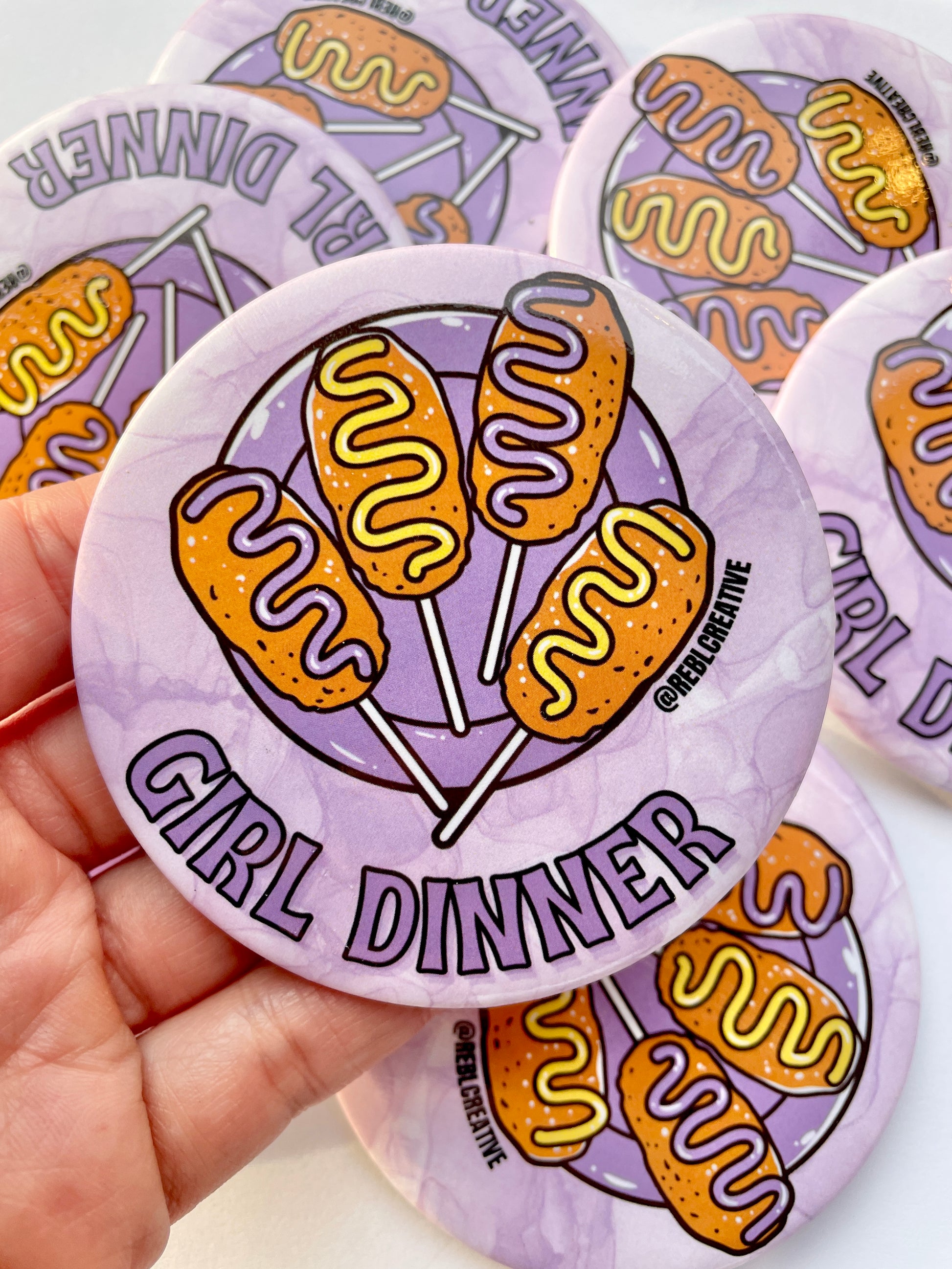 Each pin back button is 3 inches in diameter. These buttons are super lightweight and perfect for Game Day! Add to your outfit or a purse strap to complete your game day look. Each button is finished with a plastic coating to keep your button clean from any game day activities!