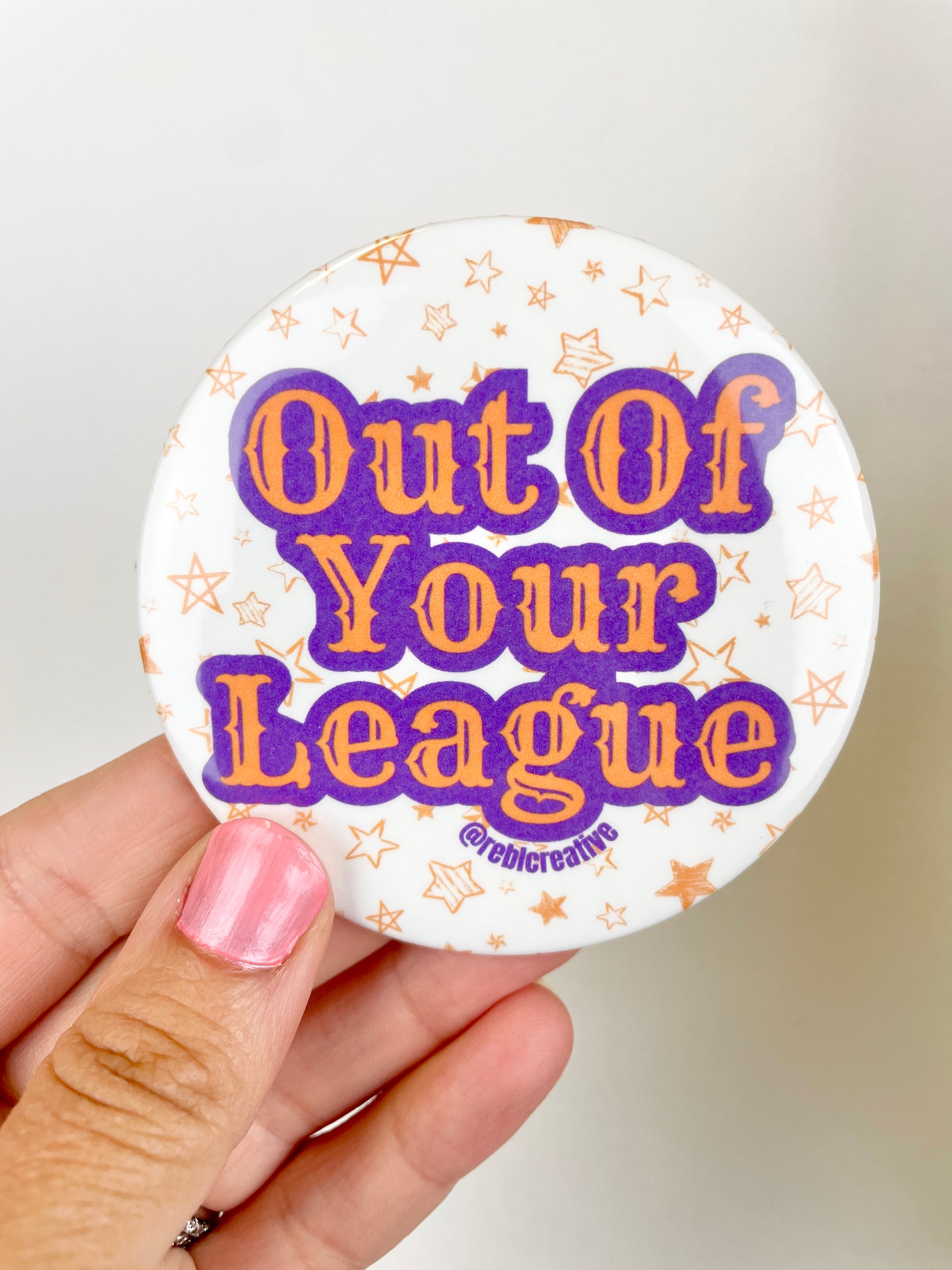 Each pin back button is 3 inches in diameter. These buttons are super lightweight and perfect for Game Day! Add to your outfit or a purse strap to complete your game day look. Each button is finished with a plastic coating to keep your button clean from any game day activities!