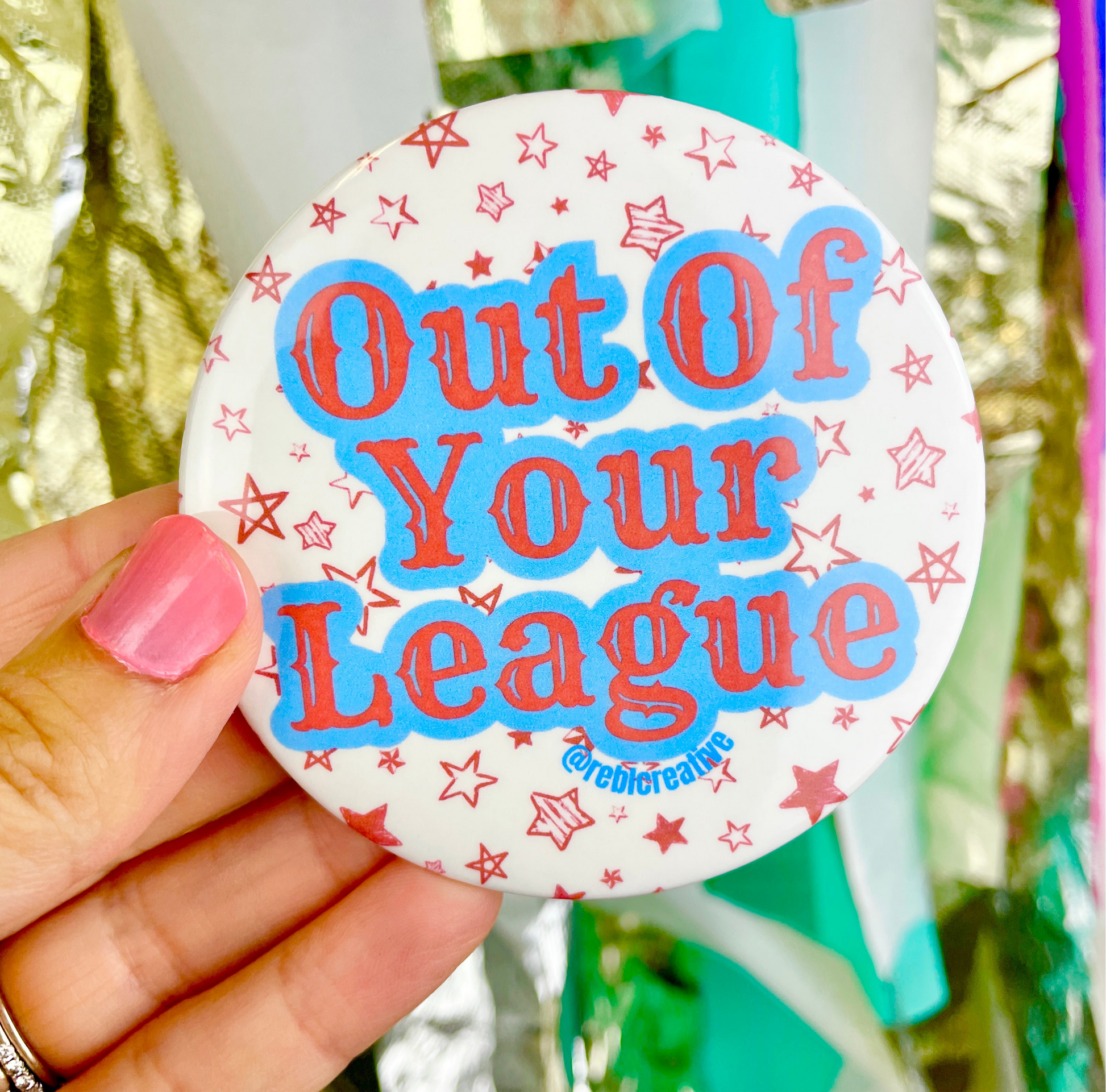 Each pin back button is 3 inches in diameter. These buttons are super lightweight and perfect for Game Day! Add to your outfit or a purse strap to complete your game day look. Each button is finished with a plastic coating to keep your button clean from any game day activities!