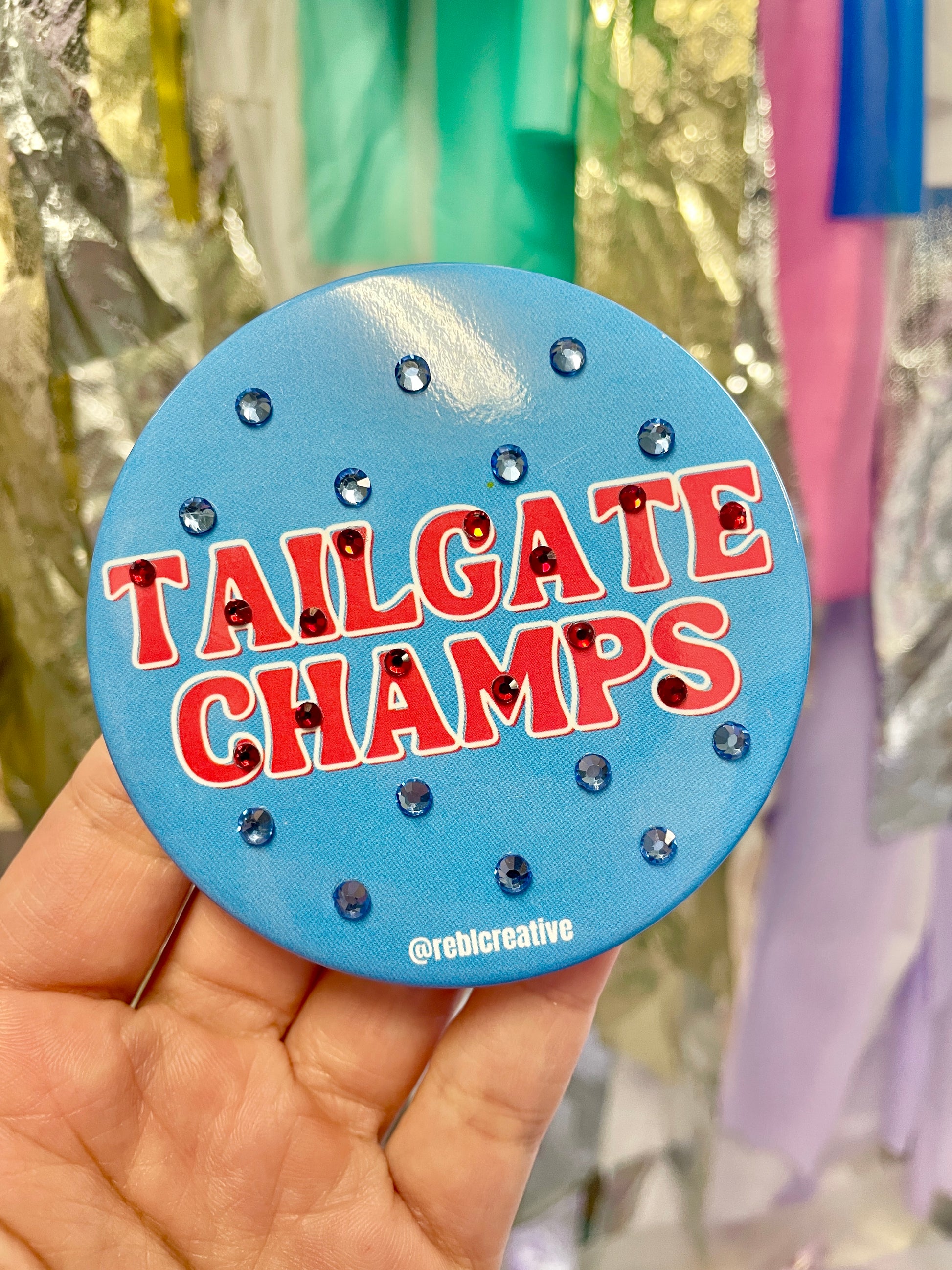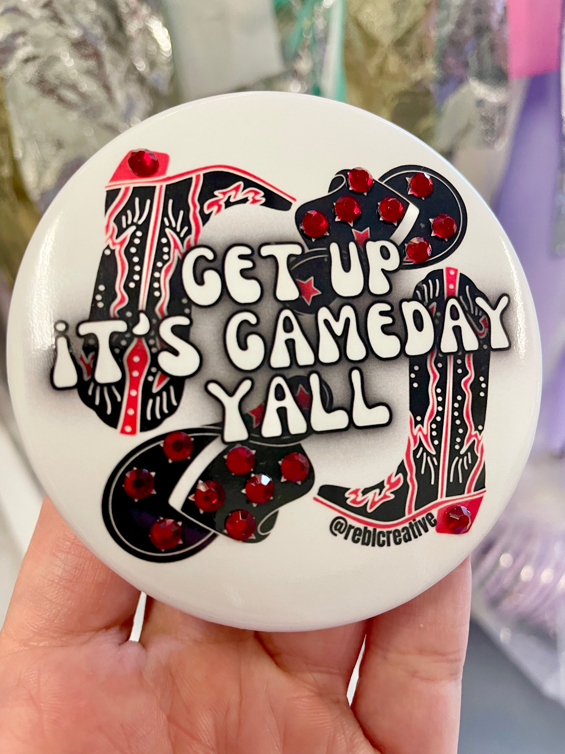 Make a statement on Game Day with our bold, lightweight pin-back buttons!