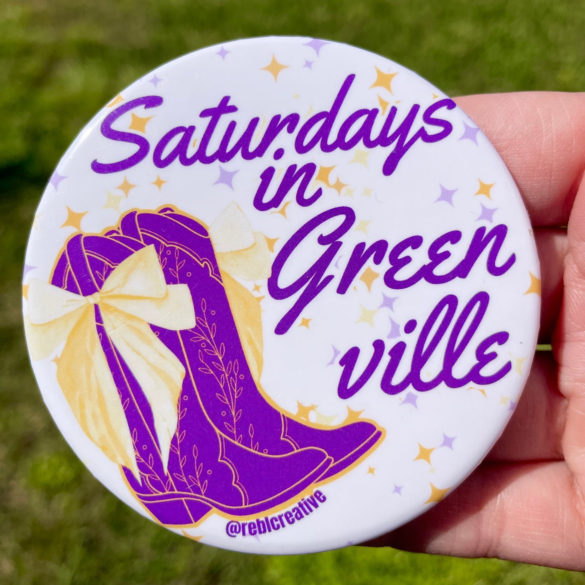 Each pin back button is 2.25 inches in diameter. These buttons are super lightweight and perfect for Game Day! Add to your outfit or a purse strap to complete your game day look. Each button is finished with a plastic coating to keep your button clean from any game day activities!