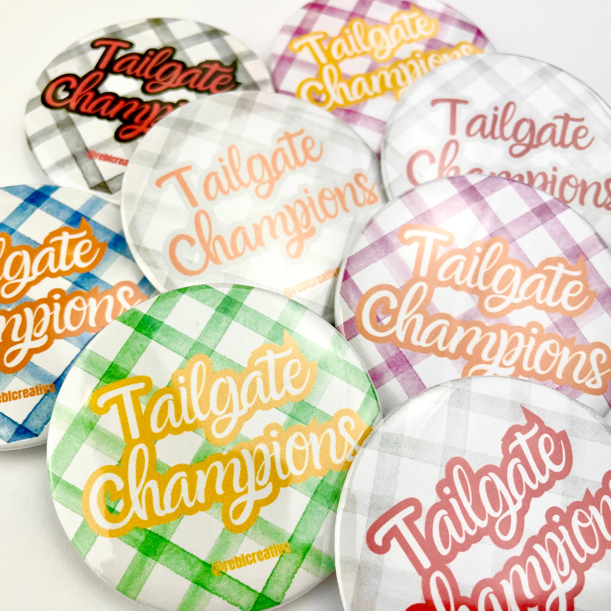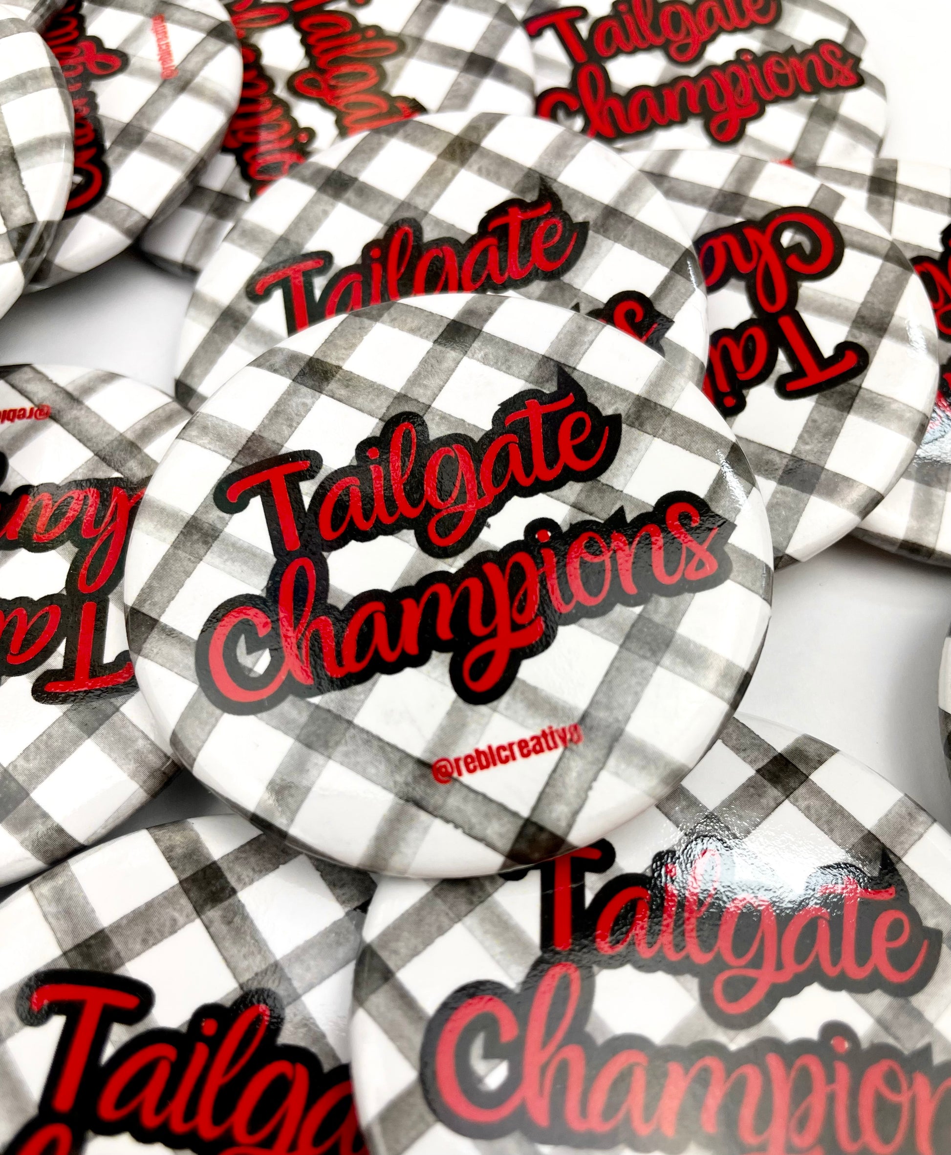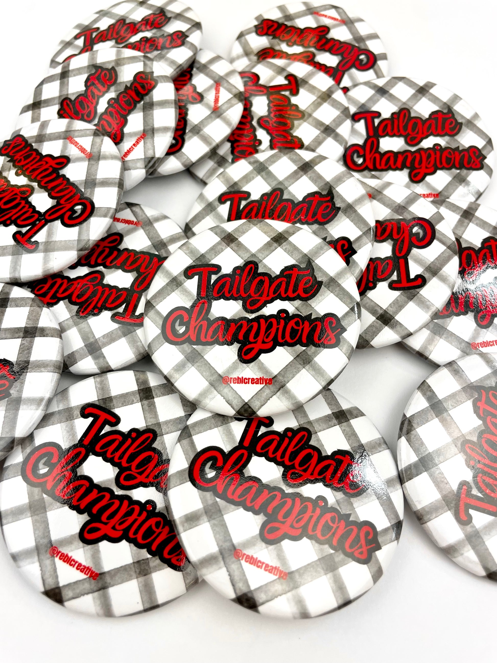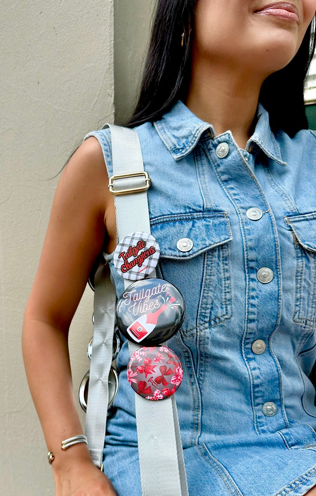Each pin back button is 2.25 inches in diameter. These buttons are super lightweight and perfect for Game Day! Add to your outfit or a purse strap to complete your game day look. Each button is finished with a plastic coating to keep your button clean from any game day activities!