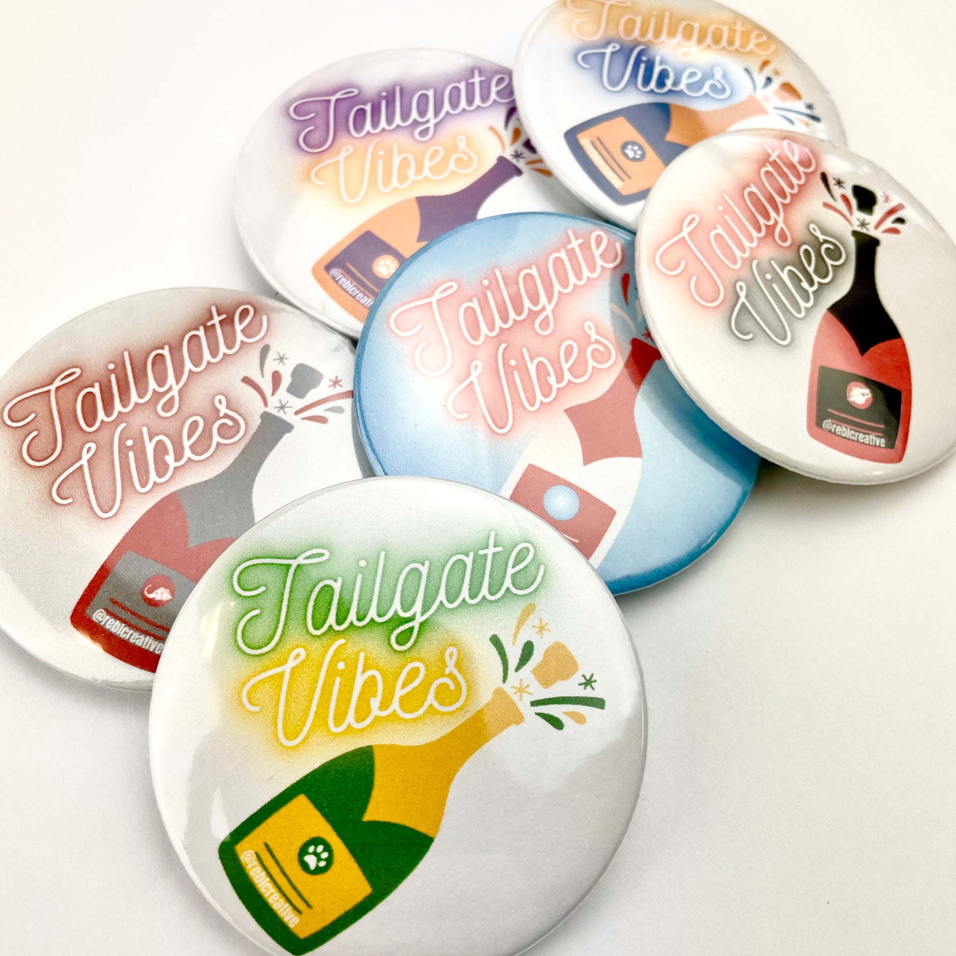 Each pin back button is 3 inches in diameter. These buttons are super lightweight and perfect for Game Day! Add to your outfit or a purse strap to complete your game day look. Each button is finished with a plastic coating to keep your button clean from any game day activities!