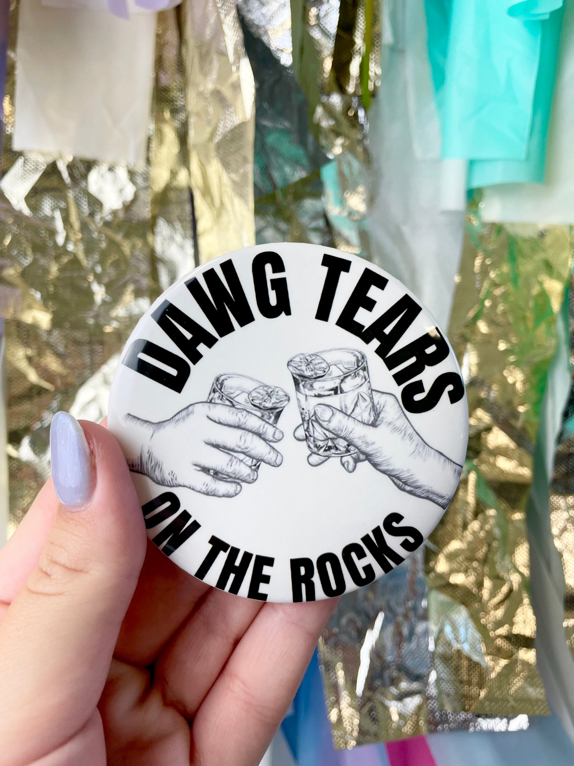 Each pin back button is 3 inches in diameter. These buttons are super lightweight and perfect for Game Day! Add to your outfit or a purse strap to complete your game day look. Each button is finished with a plastic coating to keep your button clean from any game day activities!